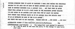 Mail-order list put together by the Rough Trade shop in January 1981, listing approx. 200