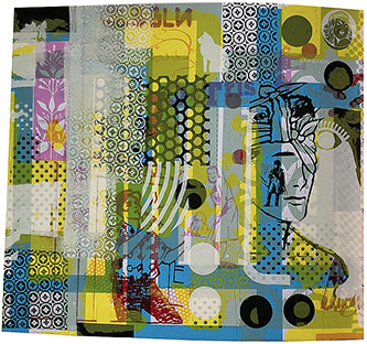 Silkscreened in many layers and colours on