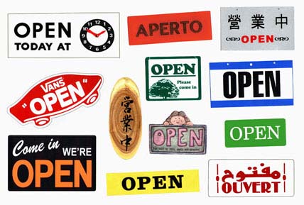 laser-cut vinyl signs included and all the OPEN & CLOSED signs in the collection