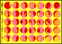 grid of 35 badge blanks -the optimum ammount that fit evenly spaced on an A4 sheet of paper.