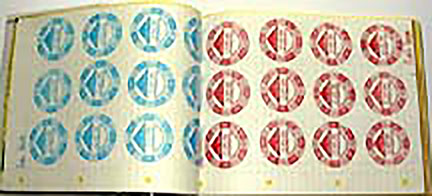 This book is a by-product of the badge making process, the perforated pages are the waste material left