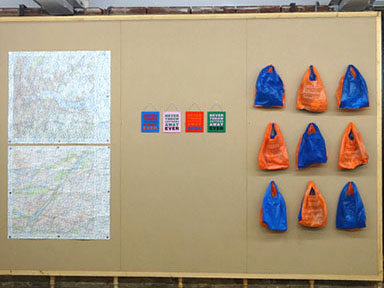 publisher Mark Pawson in his exhibition Sign Map Bag, at Milton Keynes Arts Centre this Autumn.