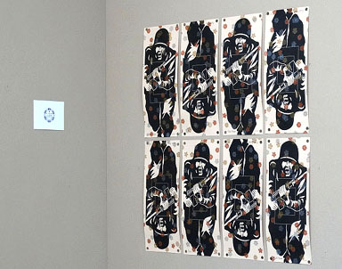 Familiar images and symbols are layered, multiplied and combined with slogans in the visually